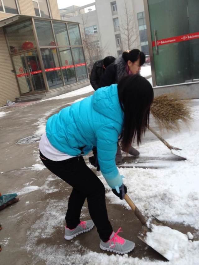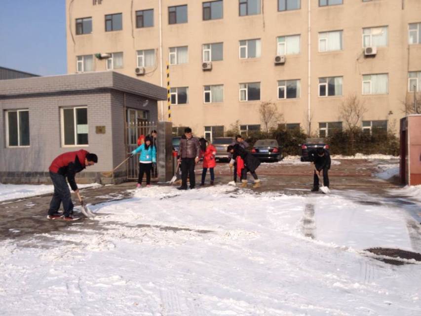 新春过后,随着各地瑞雪骤降的节奏,北京也迎来了2014年的第一场雪,2月8日早晨,北京益都仪表成套厂员工冒着雪后严寒,在公司领导带领下扫雪。同事们不畏严寒,挥舞着铁锹和笤帚,相互配合,你铲我扫,将积雪和冰层铲起集中堆放,在欢声笑语中扫出了干净的园区和畅通的大道。经过辛勤劳动,园区及附近道路的积雪被清扫干净,看着整洁的路面,大家忙碌的脸上都露出了欣慰的笑容。