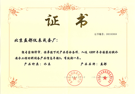 11年农村饮水安全证书