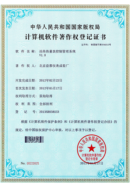 远传热量表控制管理系统软件著作权